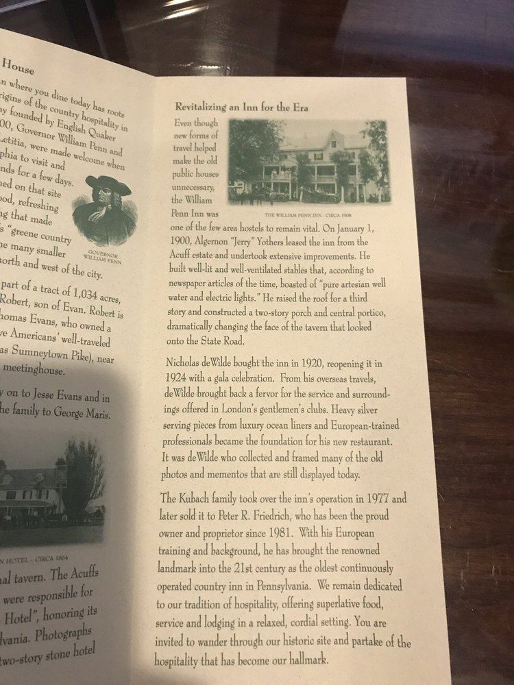 Introducing the menu at William Penn Inn, a historic restaurant in Gwynedd, PA, offers a luxurious dining experience with a diverse selection of dishes. The venue's upscale ambiance includes classic American decor, perfect for special occasions. The menu features New American and American cuisine with options like lobster rolls, crab quiche, prime rib, and filet mignon. Customers rave about the perfectly cooked dishes, such as the lobster bisque, mashed potatoes, and salmon. The Sunday brunch buffet is highly recommended for its variety and elevated items like raw oysters. The attentive service adds to the delightful dining experience, making it a must-visit for those looking for fine dining in a charming setting. With an extensive menu and excellent customer reviews, William Penn Inn promises a memorable and upscale dining experience.